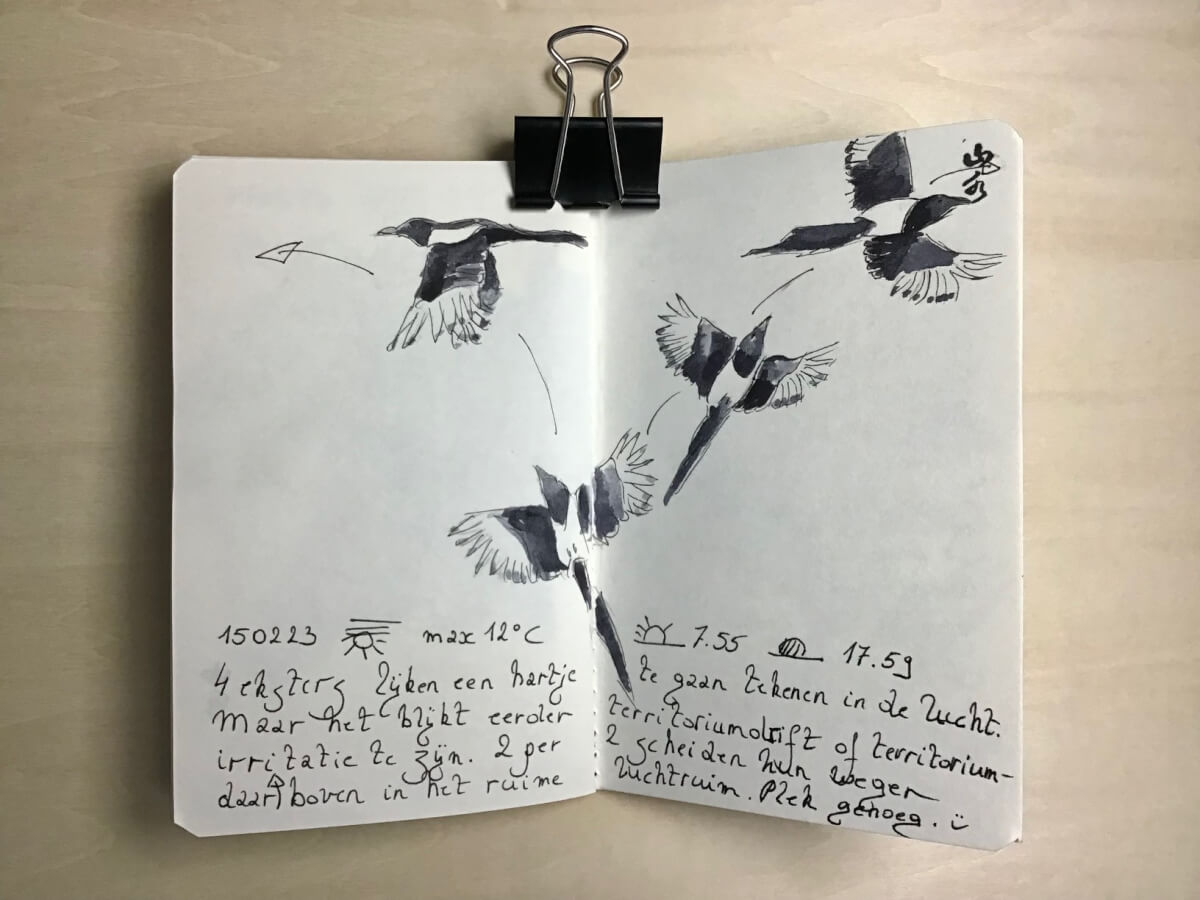 Four magpies seem to draw a heart in the air, but it turns out to be more territorial urge or territorial irritation. Two by two part their ways up there…[...]