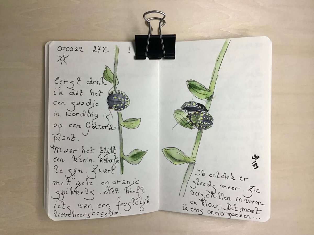 At first, I thought it was a developing seed on the โwhirling butterfliesโ (Gaura plant). But it turned out to be a tiny beetle. Black with yellow and orange speckles.…[...]