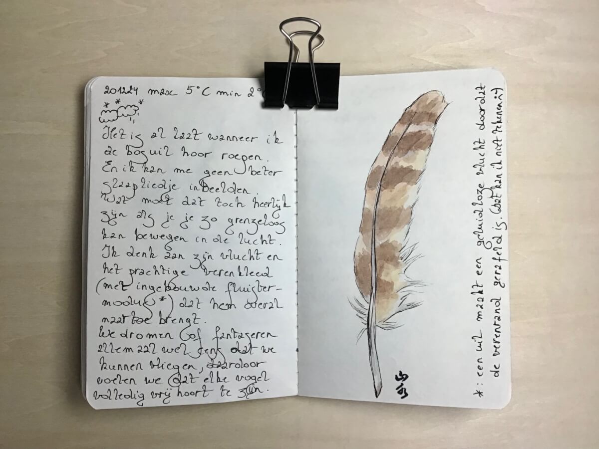 Wat moet dat toch heerlijk zijn als je je zo grenzeloos kan bewegen in de lucht. Ik denk aan zijn vlucht en het prachtige verenkleed (met ingebouwde fluistermodus*) dat hen overal naartoe brengt. We dromen of fantaseren allemaal wel eens dat we kunnen vliegen, daardoor voelen we dat elke vogel volledig vrij hoort te zijn.